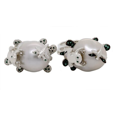 Anello Rana e Libellula in Argento con Zirconi e Perla