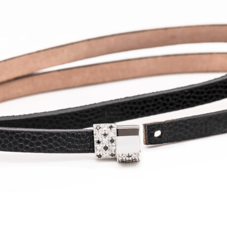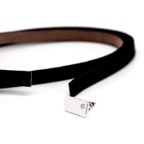 • Bracciale con chiusura in Oro Bianco 18 carati e Caucciù, incastonato con Black Diamonds 0,10 carati.Pacchetto in cui arriva il prodotto ordinato fancsv marrone e bianco