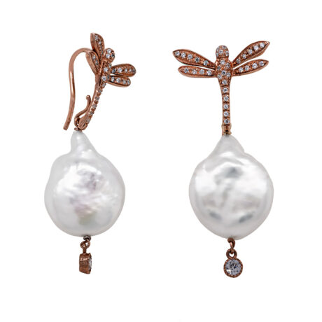 Orecchini Libellule in Argento con Zirconi e Perle coltivate
