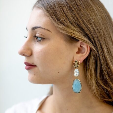 Orecchini Rana in Argento con Zirconi, Perle e Pietre Preziose