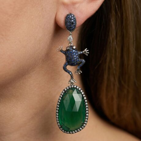 Orecchini Rana in Argento con Zirconi e Pietra Giada