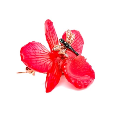 Spilla Orchidea vera con Libellula in Argento e Zirconi