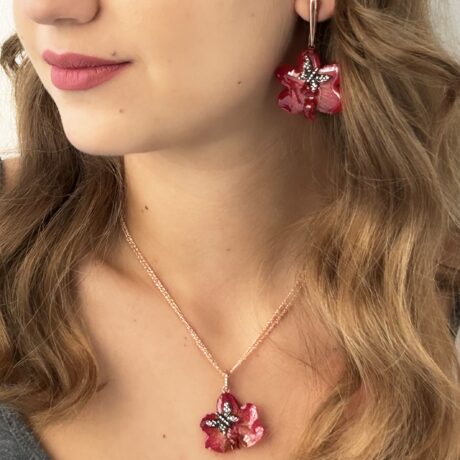 Orecchini con Libellula, Orchidee vere e Pietre preziose