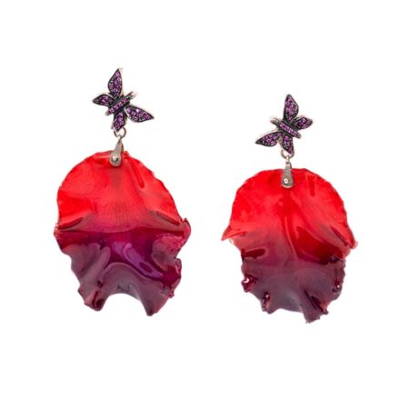 Orecchini Libellule in Oro con Brillanti, Ametista e Petali veri