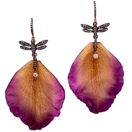 Orecchini Libellula in Argento 925 incastonati con Zirconi e montati con Petali veri MOD. 277 OR