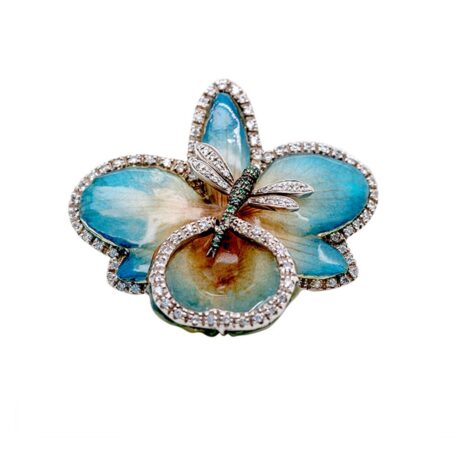 Orecchini Libellule in Argento con Orchidee vere e Zirconi <br><h6>AN.FIORE LIB OR.ARG</h6>