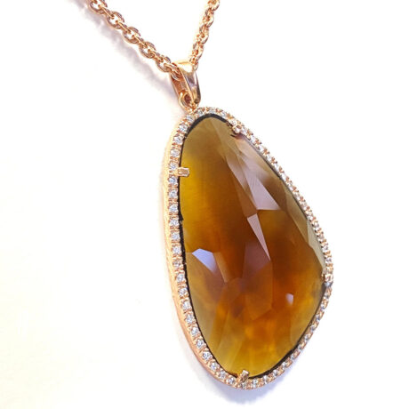 Pendente in Argento 925 incastonato con Zirconi, montato con Cristallo e catena lunga in Argento 925.