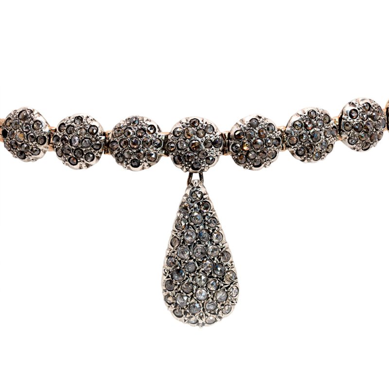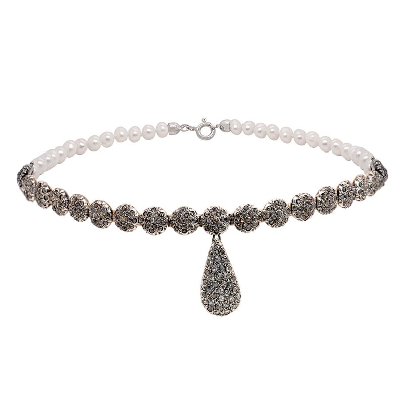 Collana in Oro 9 carati e Argento 925 incastonata con Diamanti rose coronè e perle d’acqua dolce Par.St.New.Tennis.Perle