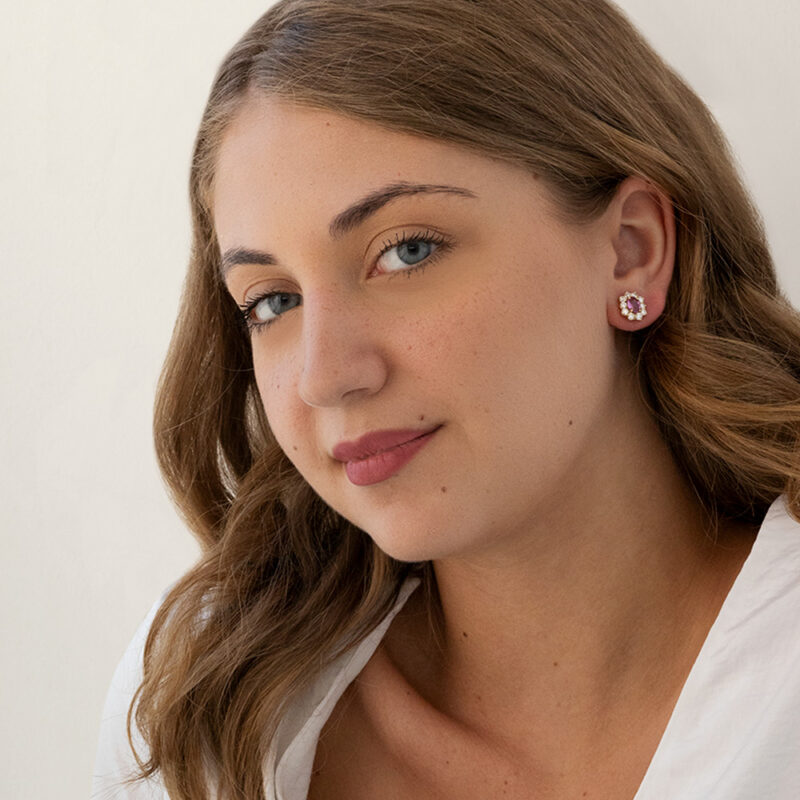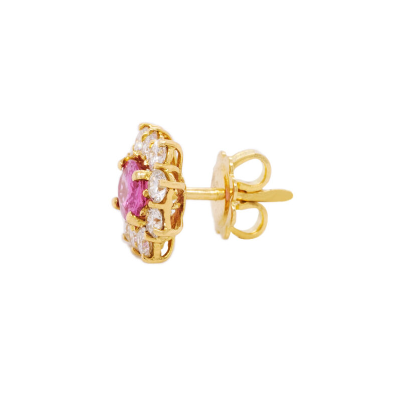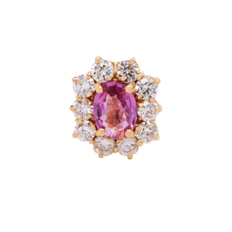Orecchini in oro 18 carati con diamanti carati 1,42 e zaffiri rosa carati 1,62