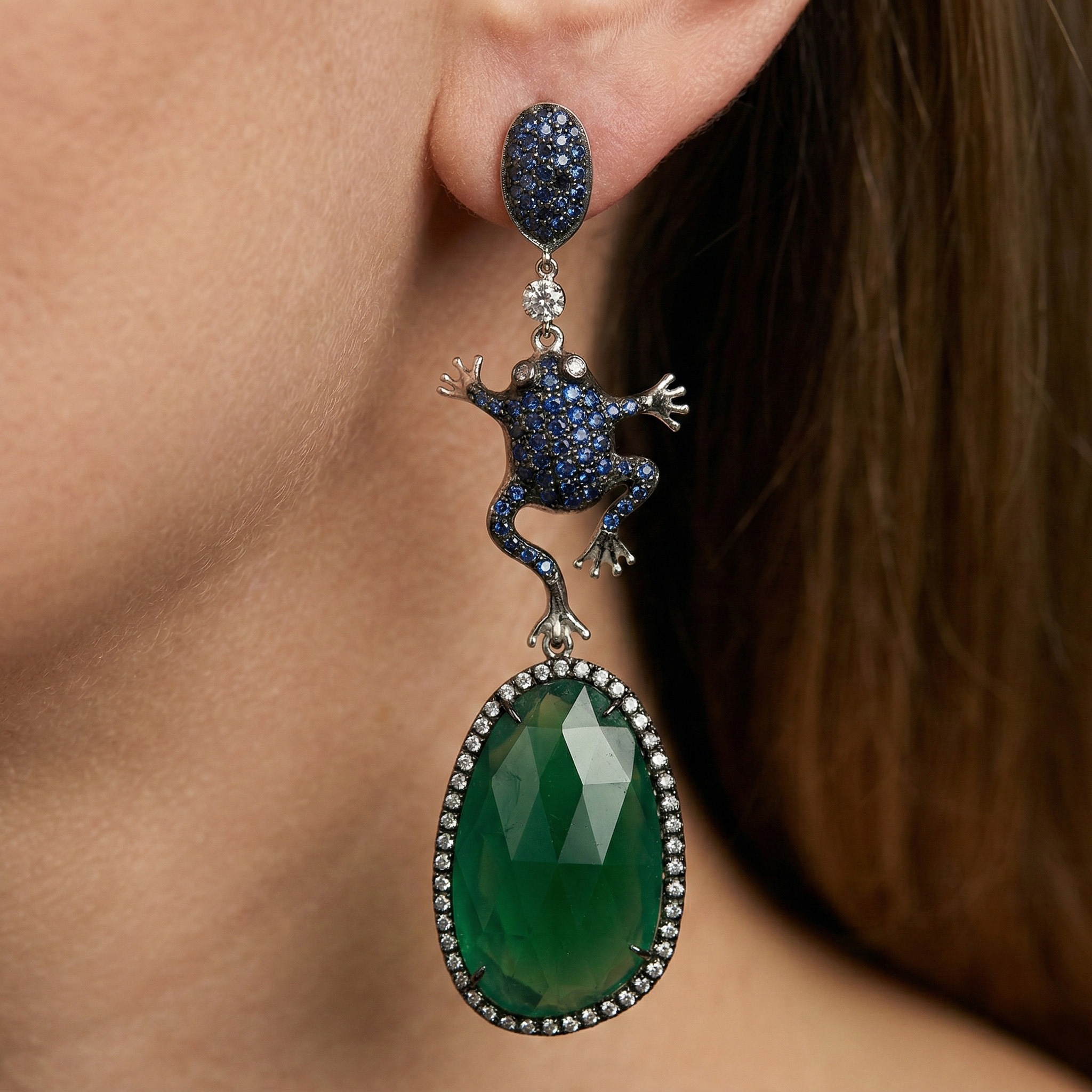 Orecchini Rana in Argento 925 incastonati con Zirconi blu e Zirconi Bianchi MOD.253OR.R.J.CAR.
