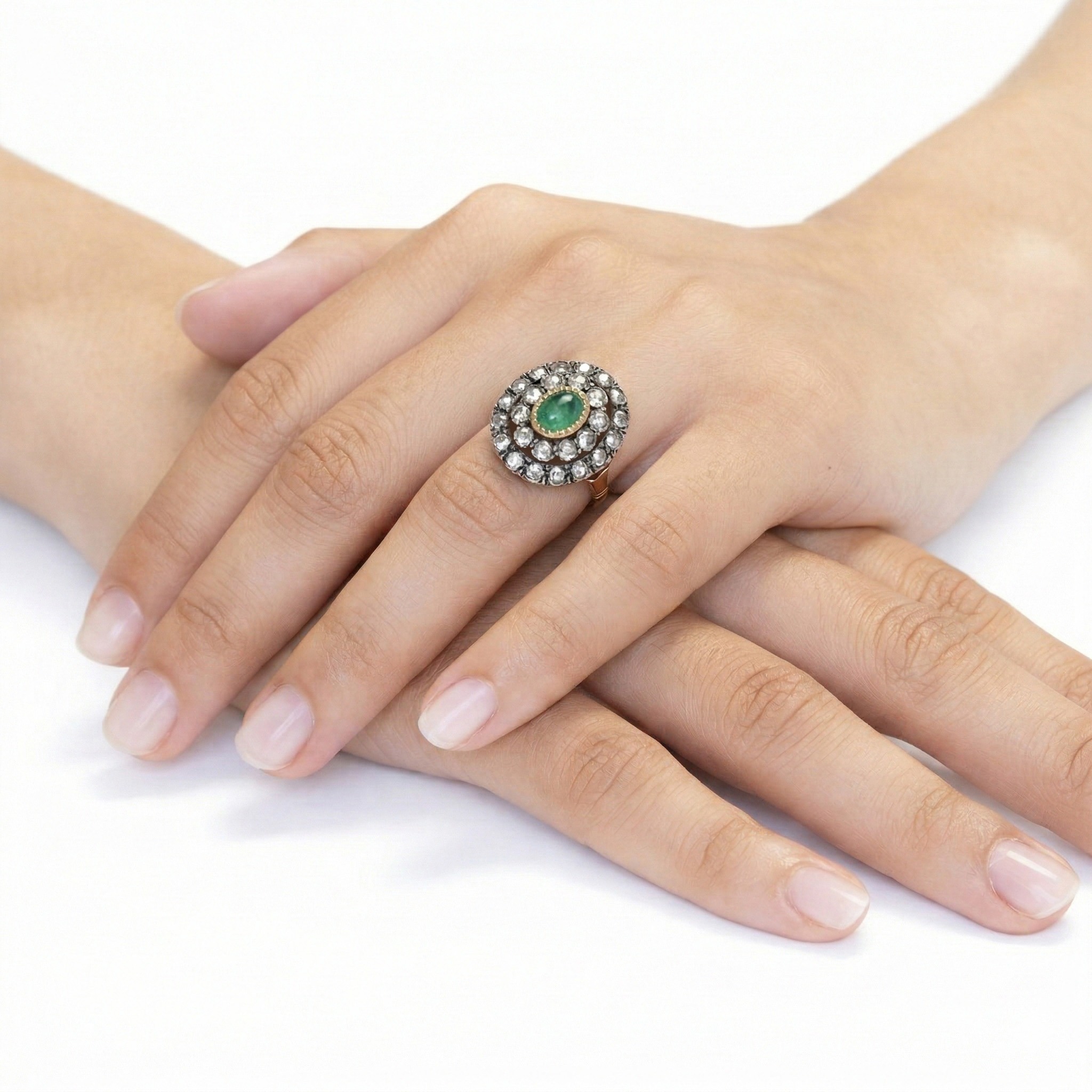 Anello in Oro 9 carati e Argento 925 incastonato con Diamanti rose coronè e Pietre preziose PAR.ST.ANT.OV AN
