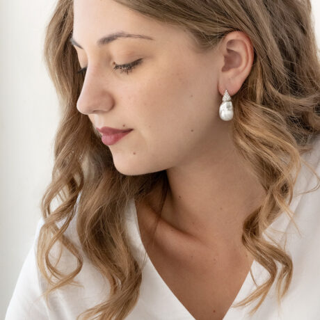 Orecchini in Oro bianco 18 carati montati con Perle Australiane 44,00 carati, incastonate di Diamanti 0,40 carati.